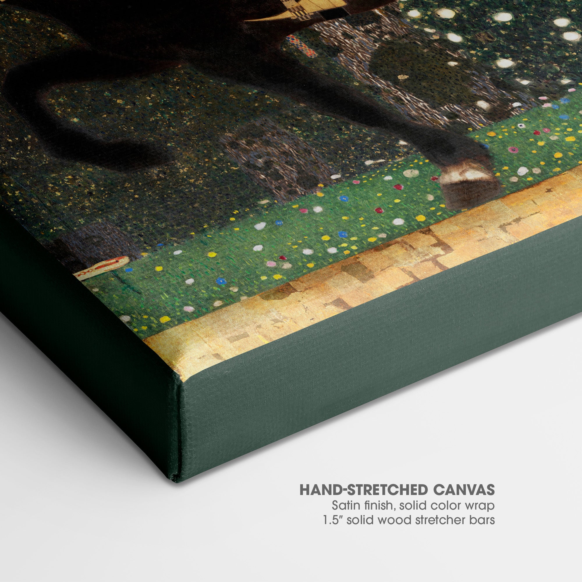 - 1.5″ deep, solid wood stretcher bars.